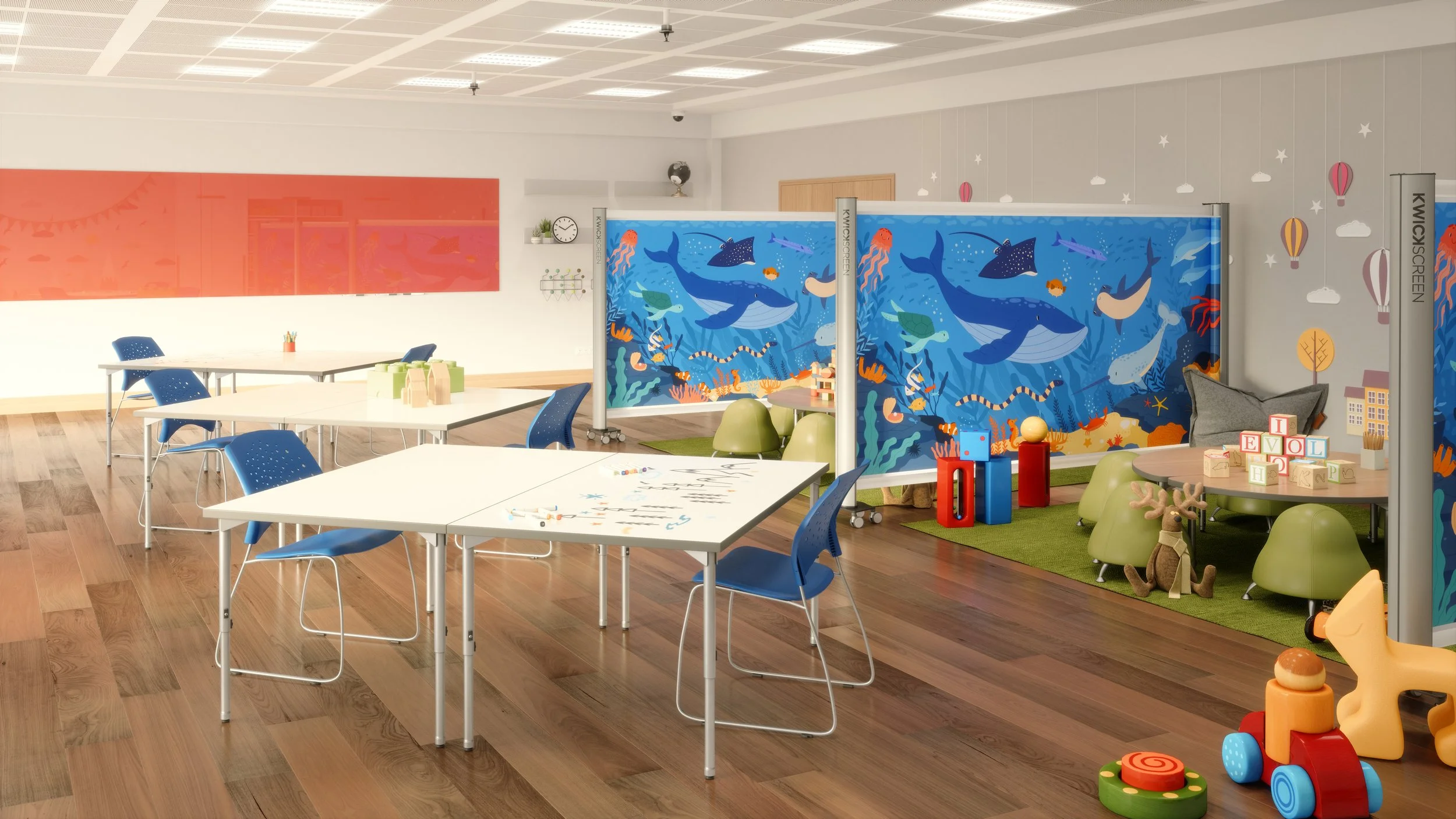 Gone are the days of fixed classroom layouts. KwickScreens provide the flexibility to rearrange and divide the space as needed. Whether it's creating separate study areas, collaborative group work zones, or a presentation space, KwickScreens allow teachers to customise the classroom to suit different teaching methodologies and activities. This adaptability enhances student engagement and encourages active participation.