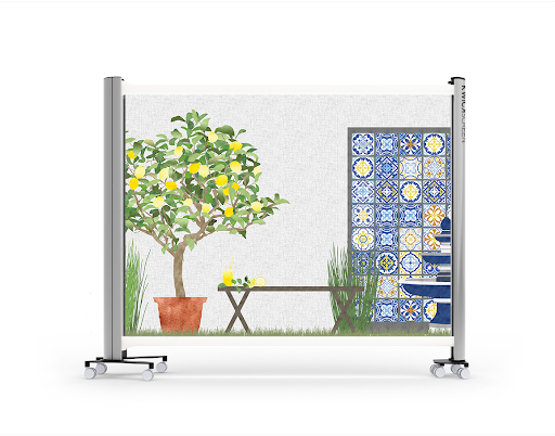 One popular use is replacing hospital curtains to divide beds in wards. Pros are a novel privacy solution that are easy to clean. Using biophilic designs, i.e. images of nature, helps reduce the stress of staff, patients and visitors alike. As the Pro is mobile, it can be adapted to meet the everchanging needs of a ward, for example if there is overflow.