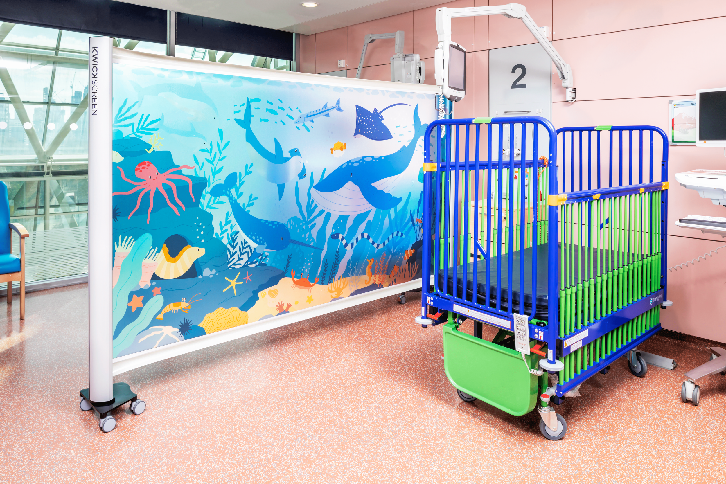 KwickScreens make the hospital environment safer and kinder for children. Child-friendly artwork brightens healthcare spaces and reduces anxiety for young patients.
