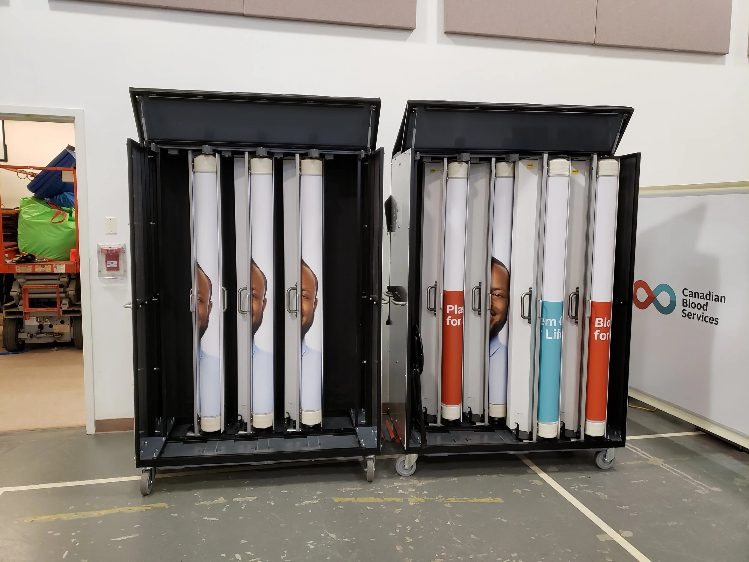The Pod is a mobile unit designed to transport 6 Duo screens to any location, fast.