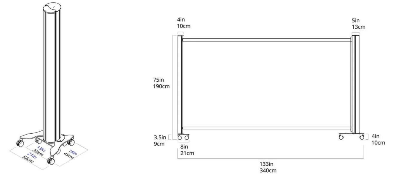 All units Pro and Duo sit at 1.9m / 75in tall.